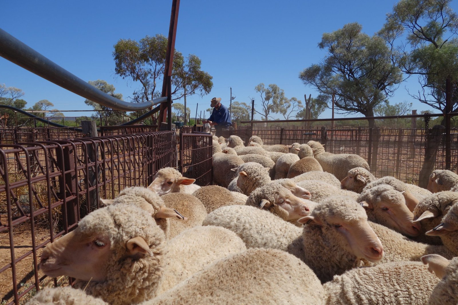 I stayed at Navarra for a couple of days, helping Andy muster and draft the weaner wethers for sale. The sheep smelled clean and dry and Andy handled them gently in the yards; whenever they got turned around and confused he’d say to them, ‘come on, have a look, have a look…’
