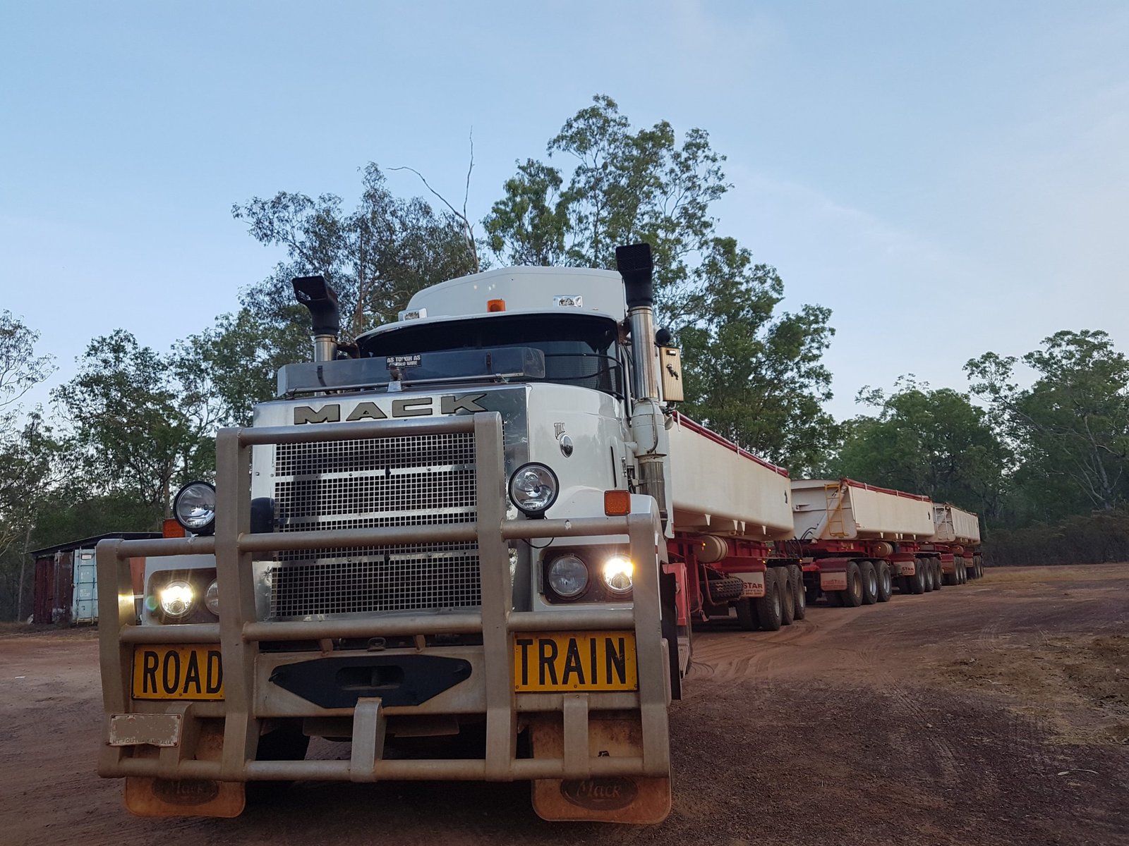 Colin’s roadtrain. Only three side tippers today.