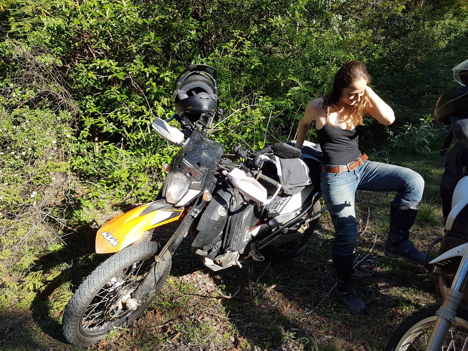 Every change of plans comes with collateral adventure, and the weekend’s riding was pretty golden. We headed up the mountain behind Kilkivan along a skinny stretch of bitumen called Black Snake Road, which twists along the ridgetop and up into cooler air. We followed some firetrails into valleys where pockets of rainforest smelled damp and primeval.